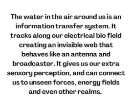 Water in a liquid stage is said to be updating its information every trillionth of a second, molecular chaos. It is very attracted to the light frequency energy and when you are focused on it for a specific time frame or have a specific relationship with water, perhaps this is how it can observe a person’s conscious thoughts or the energy of words.