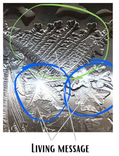 In last year’s talk I looked at Veda’s crystalline photography and how her quick freeze water pictures responded to messages in picture forms. Using many different ways to communicate with water; photos, words, music, thoughts and the spoken word, water clearly responded with recognisable frozen images.
