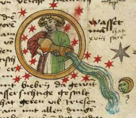 Aquarius, the sign where a person (woman), is holding a container of water and pouring ‘The Waters’ out into the world. One of the earliest pictures even found is this picture of the sign of Aquarius.